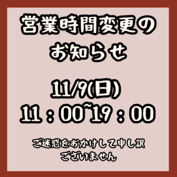 本日11月9日(日)11:00~19:00となります🙇‍♀️